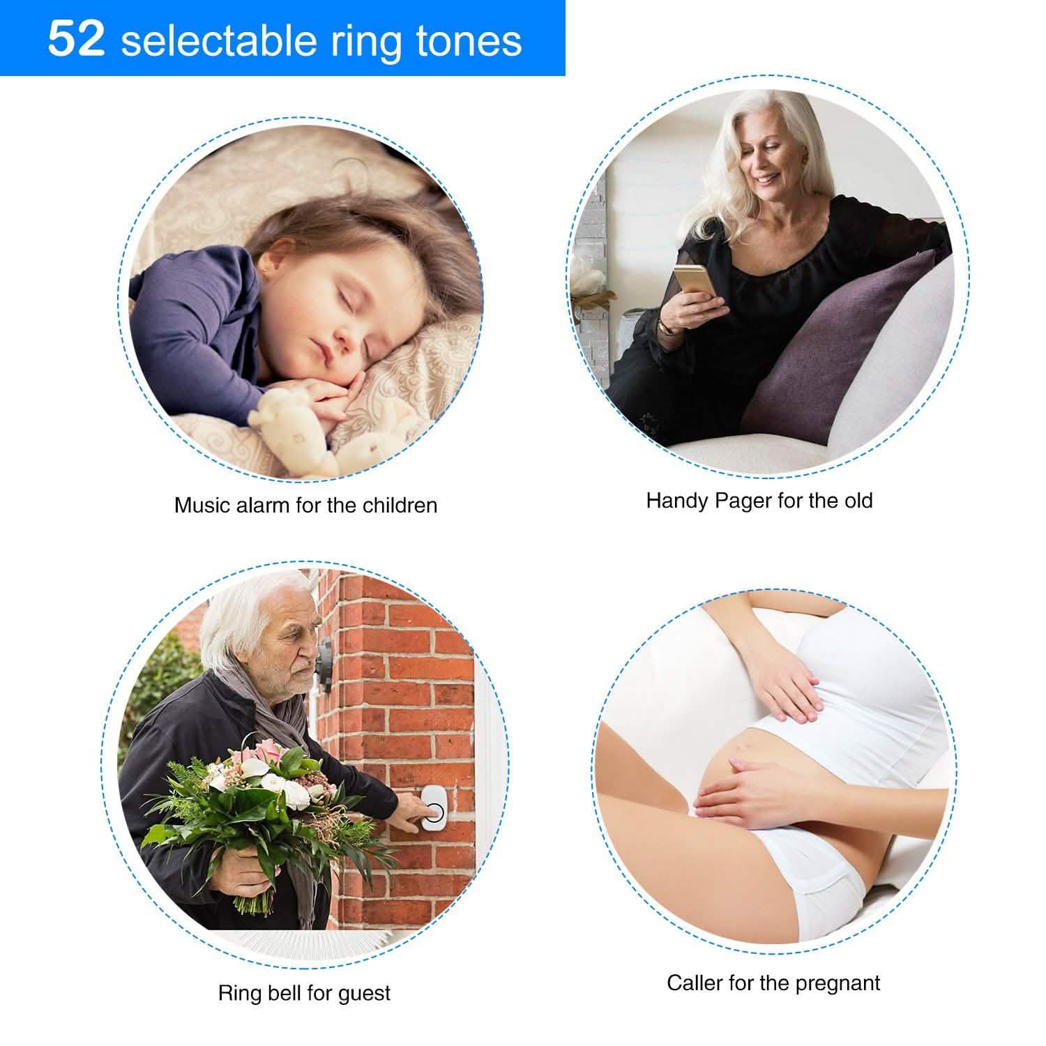 Equipped with 4 adjustable volume levels and a choice of 52 melodies, you can customize the chime to suit your preferences and needs. The stereo speaker delivers rich, crisp sound that is loud enough for any environment, while LED indicators provide visual alerts for those with hearing impairments or when the sound is temporarily muted. One transmitter can easily pair with multiple receivers, and vice versa, offering versatile solutions for larger households or commercial spaces.